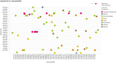 Figure 1 Snapshot of articles accessed across a session. The colours represent user professions (doctor, nurse, etc.)