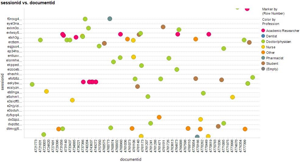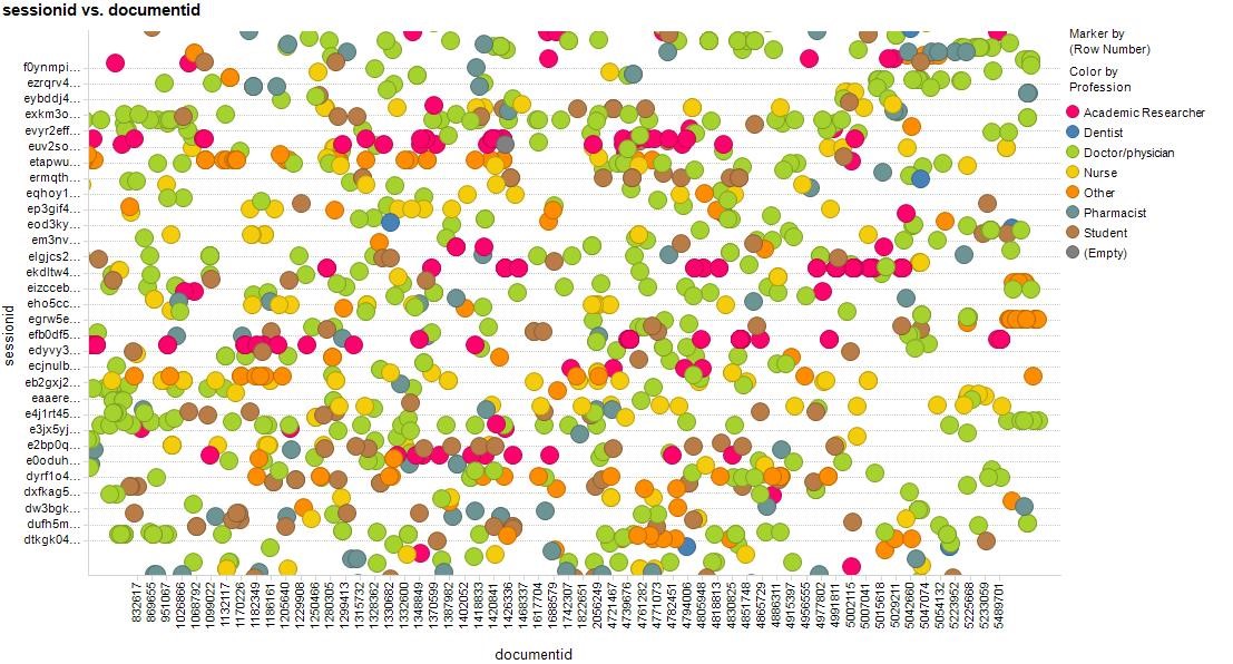 Figure 1 Snapshot of articles accessed across a session. The colours represent user professions (doctor, nurse, etc.)