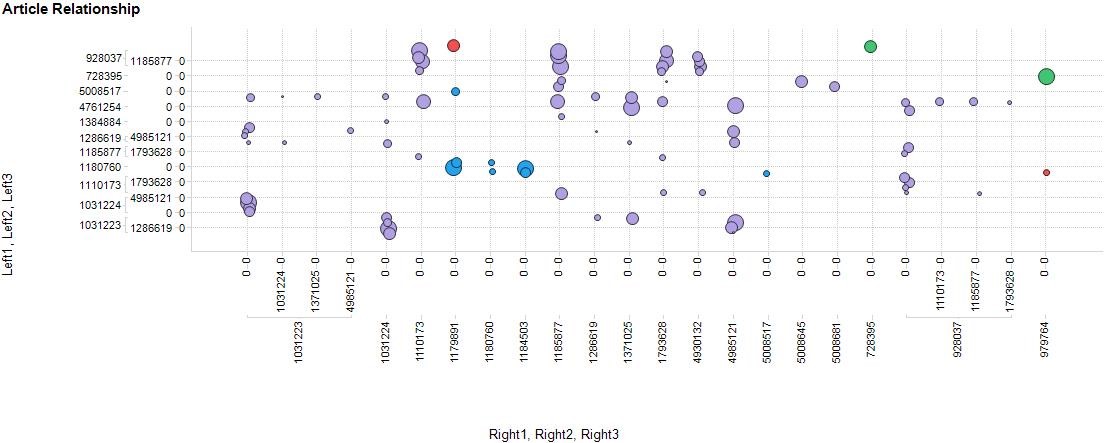 Figure 3 Snapshot of related article numbers – if the articles on the y axis are accessed it implies those on the x axis would also be of interest.